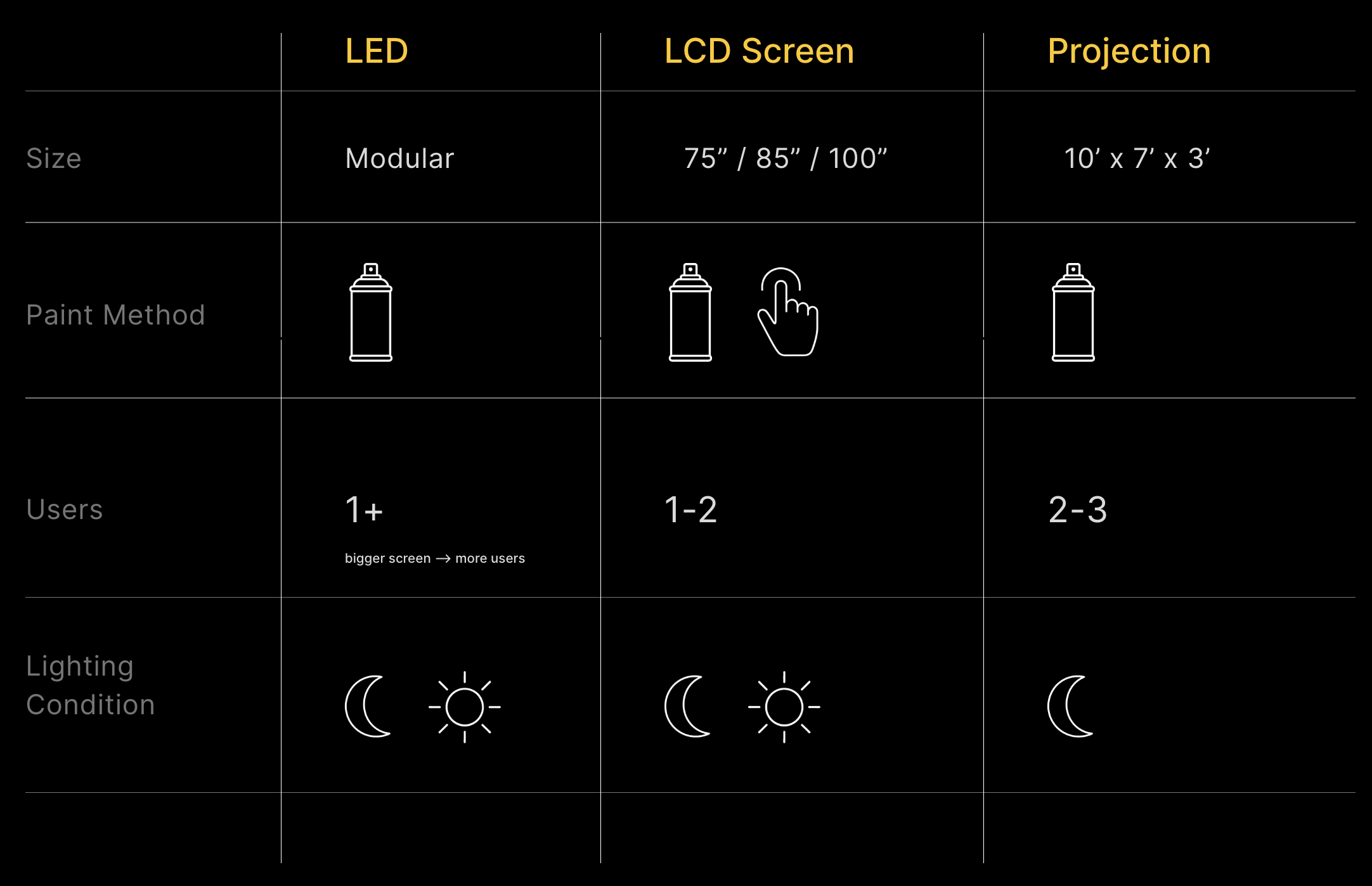 Our classic original and most-loved setup, designed for immersive graffiti experiences in dimly lit or darker spaces.